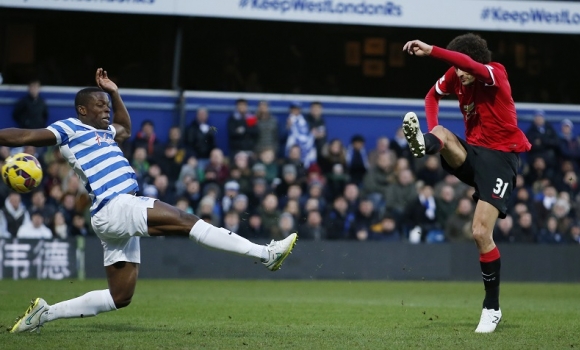 The visitors were a complete mess at the start of this game. The amount of players out of position in a weird 3-3-2-2 set up would have made even Redknapp blush and it rendered Angel Di Maria - a wide midfielder used as a centre forward - and Juan Mata - one of two players trying to play the one ‘in the hole’ position behind the front men - completely anonymous. Wayne Rooney charged around in midfield rather than attack, concentrating more on refereeing the game for Neil Swarbrick than competing in it for his team. Centre back Phil Jones, looking and playing like a police horse post Newcastle-Sunderland match, was taking the United corners at one stage and Antonio Valencia - a winger playing full back - almost gifted QPR an opening goal by being penalised for a foul throw and then stopping to argue about it rather than file back into defensive position. Eduardo Vargas flicked the resulting loose ball over the bar. The visiting fans could be heard chanting for a simpler 4-4-2 formation, and urging their team to attack. There's a feeling that Van Gaal is over-complicating things and sure enough when he simplified the set up and the approach by introducing Marouane Fellaini for Mata at the start of the second half and young striker James Wilson for Jonny Evans soon after his team improved — the Belgian opened the scoring with a fiercely struck volley during a period of sustained pressure before the hour mark.