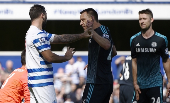 The worry for QPR was that despite Rob Green not having much to do, certainly less than Courtois in the first half, what he was being asked to do he was making a hash of. As mentioned previously, Willian’s cross had caught him unawares in the opening exchanges, and to add to this both his kicking and coming off his line was suspect. Numerous times in the first half Green kicked the ball straight into the right hand touch under no pressure, and no less than three times he was rooted to his line when he should have collected balls into the box, leaving Caulker and Onouha awkward over the shoulder type clearances as a result. Green was an eloquent and confident talker to the media in the pre-match build up, but it looked like the occasion got to him. As the half wore on the game became more and more attritional, played almost exclusively in the midfield third of the pitch. Barton was more than overshadowing his midfield rivals in the tackle and work rate department, but once again was profligate when in possession, passing straight to Chelsea players when better options were available. Most of QPR’s good work going forward was down our right hand side, with Philips and Isla combining well and giving Azpilicueta a good going over. Unfortunately, Terry and Courtois were more than equal to the balls coming into the box - Austin and Zamora having a tough time of it. QPR’s, and indeed the game’s, first meaningful effort came two minutes before half time. Zamora, who hadn’t seen much change from Terry all half won a header on the edge of the area, and the knockdown found Charlie Austin 25 yards out. After taking a couple of touches to steady himself, he fired hard to Courtois’ right, but the shot was a good height for the massive Belgian keeper, who palmed the ball away. QPR followed up Austin’s effort with a period of sustained pressure, and were by far the better team as half time approached. Whether half time was a good thing or not was open for debate. On one side of things, QPR were easily dealing with Chelsea on the pitch, Drogba absolutely woeful upfront and Hazard, Willian and Ramires largely anonymous for the visitors, however on the other side, how long could QPR, and Barton in particular, keep up their heroic work rate and concentration levels? QPR set about the second half as they ended the first — in the ascendancy. Good work by Matty Phillips down the right hand side saw him fizz in a cross that narrowly missed the far post — Bobby Zamora possibly a touch slow on the run into the box, had he gambled he would have had a free header at the far post. QPR followed this up with a free kick flighted into the box by Phillips, and following a melee, Clint Hill of all people curled the ball back into the box. Courtois saved from the onrushing Austin, who for the second time in the game caught the Chelsea keeper. John Terry acted all aggrieved and finger-waggy, which is ironic seeing as it was him who conceded the freekick in the first place with a needless draping of arms over Bobby Zamora.
