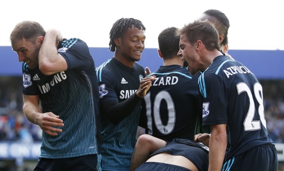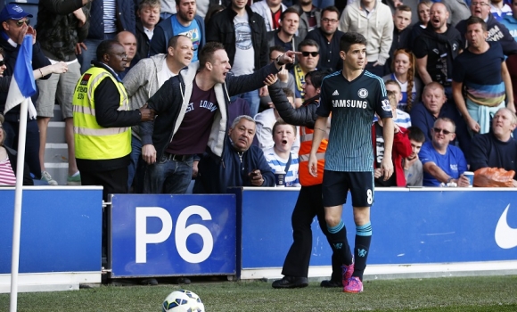 QPR kicked off, unusually, attacking the Loft End in the first half and the pattern of play settled fairly quickly — QPR tackling, harrying and not letting Chelsea any time or rhythm on the ball, but also wasteful in possession, ostensibly knocking it long to Zamora but in essence just aimlessly downfield. One of the hallmarks of this team this season has been that they struggle to know what to do with the ball when they have it — the instinct is always to get rid of the ball as soon as possible often high and long, instead of taking a touch and looking up. That said, one of those pitching wedge-type clearances gave QPR their first chance on five minutes, as a clearance from Nedum Onouha caught Azpilicueta flatfooted as Philips charged down the right, but neither Zamora nor Austin had gambled into the area and Philips low cross was easily met by Thibaut Courtois. In response, Willian hit the post with a cross that appeared to catch Robert Green unawares — more of which will be covered later. In the centre of the park an intriguing battle was developing between Matic and Barton, each their respective side’s best player on the day. Joey was careering round the pitch at breakneck speed — harrying, breaking up tackles and involved in all of QPR’s defensive work. Matic, an imposing figure at 6ft 5ins was the fulcrum for most of Chelsea’s play, with Ramires and Fabregas largely anonymous in the opening exchanges. A rare blip in Matic’s performance was greeted roundly with cheers as, following a Barton challenge on Hazard, he spooned the loose ball into touch under no pressure whatsoever. The game was end to end to a point, but neither side were looking particularly sharp in attack. Austin had chased a through ball and given Courtois a boot to his chest for his troubles, whilst for Chelsea, Willian and Matic in particular were enjoying more of the ball without actually doing much.