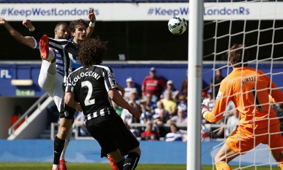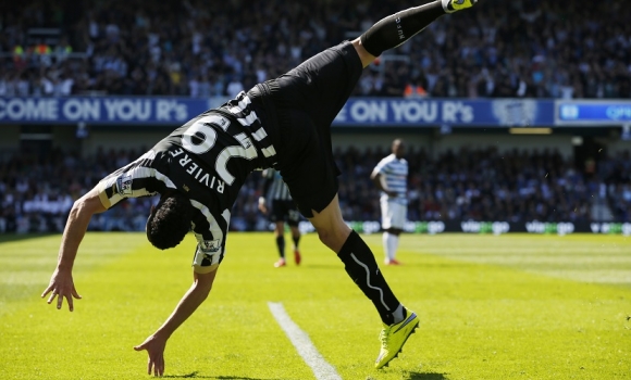 Initially it looked like even the glorified advertising hoarding would have too much for a QPR team that had failed to win at home in ten attempts, losing seven, prior to kick off. Despite having a tall, physically imposing back four of Nedum Onuoha, Stephen Caulker, Clint Hill and Richard Dunne in situ, Rangers were persistently troubled by long punts down the centre of the field. Goalkeeper Rob Green was forced to punch the ball out for a corner after four minutes when one such aerial assault had been allowed to bounce in the area. Midway through the half the centre backs got in a muddle again: Caulker pushed up to play offside, allowing a dangerous ball to bounce in behind him, while Richard Dunne went too deep and played the visiting lone striker Emmanuel Riviere on. The Frenchman fell over the ball, as you would expect of a £5m player who hadn’t scored in 18 league appearances prior to this, but QPR have always been charitable to these John Jensen/Lloyd Doyley types and the skewed shot drifted into the net regardless. Riviere’s perfectly executed summersault celebration was entirely out of keeping with the quality of the finish, the game as a whole to this point, and his appalling record since arriving from Monaco last summer.