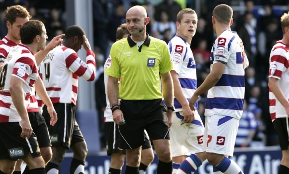 Plymouth 1 QPR 1, Saturday August 15, 2009 Referee Roger East had a reasonable day all in all, although was possibly slightly fussy. There was a lot of whistle from him at times, but not cards which although is usually a relief was not a particularly good thing when Plymouth were kicking Taarabt from pillar to post in the first half and further punishment was probably required. His one really dodgy moment came with little more than twenty minutes left for play. First Taarabt was obviously fouled in the Plymouth half but was told to get up, Argyle then broke and players and fans appealed as one for handball as Fallon’s shot was deflected wide — it did not look like a penalty from the far end of the ground and a corner was the right outcome from where I was. Plymouth: Larrieu 8, McNamee 6, Seip 6, Timar 6, Sawyer 5, Fletcher 5, Paterson 7 (Duguid 86, -), Judge 7 (Noone 82, -), MacLean 5 (Sheridan 46, 7), Mackie 6, Fallon 7 Subs Not Used: Letheren, Arnason, Summerfield, Johnson Goals: Gorkss 90 og (assisted Fallon) QPR: Cerny 6, Ramage 6, Hall 7, Gorkss 6, Borrowdale 6, Routledge 7, Leigertwood 7, Mahon 5, Buzsaky 6 (Ephraim 72, 6), Taarabt 7 (Vine 76, 5), Helguson 6 (Agyemang 61, 5) Subs Not Used: Heaton, Stewart, Pellicori, Connolly Goals: Helguson 43 (assisted Taarabt) Referee: Roger East (Wiltshire) 6 Slightly fussy perhaps, and probably should have produced a card for Plymouth’s brutal approach to stopping Adel Taarabt early on in the game, but overall made very few mistakes and did not stand out — which is what you want. Cardiff 0 QPR 0, Tuesday February 24, 2009 Liam Miller was the first man to go into the referee’s book for a poor foul on Ledley deep inside the Cardiff half. East could easily have let him off with what was his first foul of the game but it seems churlish to complain when two minutes later Mikele Leigertwood was lucky to get away with a thigh high lunge on McNaughton who subsequently required extensive treatment in the centre circle and was substituted at half time. The home fans bayed for blood, the referee settled for a free kick and a final warning. The next forty five minutes were about as well as Cook has played this season after a poor first half. Within two minutes of the restart he had picked the ball up wide on the left touchline, turned and accelerated away from Cardiff ’s new arrival and collapsed in a heap on the edge of the penalty area buying a free kick from our referee. Liam Miller sized the free kick up and was clearly aiming low for a gap to be created by Mahon peeling away just before the shot. Sadly Miller’s aim was slightly out and he succeeded only in blasting the ball straight into the gut of one of the blue bricks in the defensive wall. Cardiff then came back into the match and enjoyed what would turn out to be their last ten minutes of pressure. It all started with Michael Chopra theatrically hitting the deck under minimal contact from Kaspars Gorkss and appealing demonstrably for a penalty to be awarded. It never was. Cheating, plain and simple. Not the first time Chopra has done that in his career, not even the first time he has done it against us. East was absolutely right to wave the appeals away and could even have showed Chopra a yellow card. The mood among the home fans did not improve much when Parry took Stewart to the byline and was then the victim of a crude lunge by the Jamaican which should have been a free kick and booking at least but was actually given as a QPR goal kick right in front of the most vociferous Cardiff fans. Mr East was not winning many friends in South Wales although having given them a penalty and disallowed a Coventry goal on his last visit here perhaps they have had their fair share of decisions from him this season. QPR completely took over and dominated the game from this point on. Cardiff: Konstantopoulos 6, McNaughton 8 (Comminges 46, 5), Purse 7, R Johnson 7, Kennedy 7, Parry 6, Rae 6, Ledley 7, Burke 7 (Owusu-Abeyie 73, 6), Chopra 5 (Whittingham 66, 6), McCormack 6 Subs Not Used: E Johnson, Scimeca QPR: Cerny 7, Connolly 7, Gorkss 8, Stewart 8, Delaney 8, Cook 7, Miller 6 (Alberti 58, 6), Leigertwood 8, Mahon 7 (Blackstock 89, -), Routledge 7, Helguson 6 (Di Carmine 90, -) Subs Not Used: Hall, Lopez Booked: Miller (foul), Alberti (foul) Referee: Roger East (Wiltshire) 6 The Cardiff fans were moaning about him on the radio afterwards but I thought he got both of their penalty appeals absolutely spot on. One was a blatant dive and the other was a good tackle from Gorkss. Should have booked Stewart and Leigertwood for their fouls and was assisted by a truly awful linesman down at our end of the ground but not bad overall.
