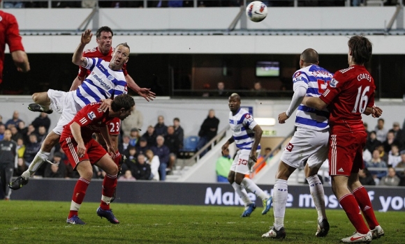 QPR had been a distinct second best for the entire game, thanks mainly to a chaotic midfield set up that only the impressive Samba Diakite could apparently make any sense of. Diakite, clearly, should be in a secure unit. It's disconcerting to think that somewhere out there in this great city of ours he's allowed to wander about as he pleases in general society. He's a bit of a maverick, doesn't play by the rules, as Alan Partridge may have said. Here, after a nightmare opening to the match where he gave possession away twice in quick succession, he glided around the middle of the field moving the ball as if it were made of silk; he looked composed in what he was doing but confused about where on earth he was. Diakite's one man human wrecking ball operation against Fulham that resulted in 13 fouls in half an hour of football and an inevitable red card means that Old Father Time Shaun Derry must now start alongside him as a chaperone. The team benefits from Derry's calming influence on the talented but unhinged Malian, but finds itself hindered by the presence of a player who sadly cannot help but allow much of the action at this level to pass him by these days. To help Derry out, Barton played to his right, covering into the centre when out of possession with disastrous consequences: the midfield became too crowded, Liverpool found overlaps too easy to come by in wide areas, and on the rare occasions they didn't have the ball Barton gave them it straight back. It was a midfield set up a managerial dream team of Bryan Robson and Peter Reid might have come up with and it left the high quality strike pairing of Djibril Cisse and Bobby Zamora isolated 50 yards down the field waiting a dozen minutes at a time to see scraps of possession. Adel Taarabt roamed the no man's land between the two groups in vain, similarly starved and frustrated by the shemozzle behind him. This hadn't worked against a Bolton team vastly inferior to Liverpool ten days previously so why Hughes tried it again here only he knows. Facing up to a midfield three of Steven Gerrard, Jay Spearing and Charlie Adam in this manner was a recipe for total destruction. Maddeningly, despite effectively playing with three defensive midfielders immediately in front of the back four QPR still found themselves overrun by a Liverpool side playing a lone attacker. Steven Gerrard picked the R's apart like a rugby league half back, playing his strike man Luis Suarez in at will between the bemused pairing of Anton Ferdinand and Nedum Onuoha, restored as the centre back combination in the absence of in form Clint Hill. Luke Young was recalled at right back and struggled like most others for the early stages of the game, Armand Traore played on the other side with slightly more authority. Paddy Kenny started in goal. QPR’s players finished the night as heroic Trojans, but they started it looking almost afraid of their own shadows. Shanked clearances and wayward passes meant Rangers barely got out of their own half for the first quarter of an hour and when they did Barton played out the opening act of his horror show by presenting a well positioned free kick straight back to Liverpool which, thanks to a subsequent slip from Nedum Onuoha, allowed Luis Suarez to race through on Paddy Kenny’s goal. Thankfully - for all of Suarez’s movement, tricks and casual racism — he’s out of touch in front of goal and currently only has six to his name in the league, two less than our own Heidar Helguson who hasn’t played for three months. Here he was denied splendidly by Kenny who then did enough to save bravely at his feet and prevent the rebound being converted as well. Suarez kicked it out of the goalkeeper’s hands and was rewarded with a corner - one of only two decisions referee Howard Webb got wrong all evening. Fortunately for the official Gerrard’s delivery went right through the penalty box untouched but Liverpool quickly won another corner, and another, and another, and another. Eight in all were swung over during that terrifying Alamo-like first ten minutes with the marking ranging from questionable to non-existent. Rangers seemed to revel in the dark art of switching off every time the ball went dead enabling Liverpool to load repeated two on one situations against them. With Daniel Craig watching on Martin Skrtel, looking for all the world like the sort of villain who might come after Bond's teticles with a precision laser, nodded a free header into the six yard box where Martin Kelly had the ball pinched off his toes by a combination of Barton and Young. Then after Downing had, to his credit, turned down the opportunity to go over in the penalty area when tripped in favour of getting a shot away that was blocked behind, Skrtel headed down again for Kuyt this time in the six yard box but Rangers muscled up again.