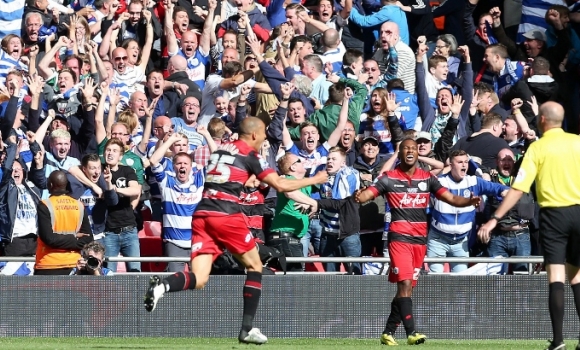 QPR, making a first visit to Wembley Stadium in 28 years, defeated Derby County 1-0 on Saturday with a last minute goal from Bobby Zamora.