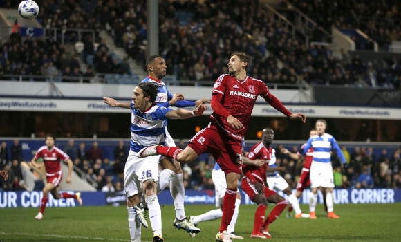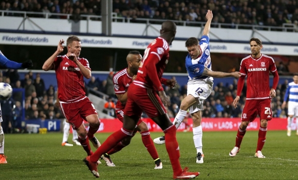 Middlesbrough may have been in a bit of a funk in the last few months, but they are still the best side in the league at defending a lead, having only dropped two points from winning positions all season, compared to QPR’s 23 — the worst in the league along with Fulham. Boro have also kept the most clean-sheets in the league, with 19 already coming into this game. It was apparent therefore, that it would take something special for QPR to get back into the game. The hosts took the initiative following conceding the opening goal, and after a period of semi-sustained pressure, were rewarded with a fine equaliser ten minutes later. Middlesbrough failed to deal with a Faurlin ball into the box, and it fell to Mackie, back to goal on the edge of the box, who instinctively swivelled and thumped it goalwards with his left foot. The ball crashed down off the bar, and clearly over the line before bouncing back out again. Luckily the far side linesman had kept up with play enough to confirm to the referee, and the goal was eventually given.