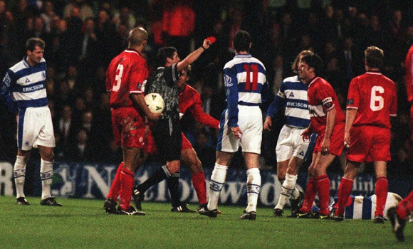 In the weeks leading up to the trip to W12 they had cemented their credentials in two competitions with an unbeaten run of seven matches, six of them wins. Sunderland, most crucially, had been vanquished 3-1 at the Riverside, but the run also included a 2-0 home win against Liverpool in the second leg of the League Cup semi-final which set up a cup final at Wembley against Chelsea for later in the year — cup run breeding confidence for promotion push shocker. They had, however, been dicked 4-0 by Forest at the weekend, though I’m not sure that would have raised too many concerns about an evening in Shepherd’s Bush. QPR’s class of 1997/98 was utterly dire. Relegated from the Premier League two years prior, they’d put their faith in Arsenal assistant Stuart Houston to return them to the big time, and spent millions of new owner Chris Wright’s money on John Spencer, Gavin Peacock, and a host of imports from Houston’s old stomping ground. A ridiculously talented Rangers team including the likes of Trevor Sinclair, Andy Impey, Alan McDonald, Paul Murray and Nigel Quashie had somehow contrived to miss the play-offs altogether in 1996/97, and they responded to that by spending a club-record fee on Mike Sheron from Stoke in the summer. Things started well, a 1-0 home win against Pompey in September put Rangers joint top on a run of six wins in seven (they, too, lost 4-0 in Nottingham during that period), but tailed off quickly, with a falling out between the previously miraculous and prolific Spencer and assistant manager Bruce Rioch not helping. Rangers went on a run of two wins in 14 through the autumn. Houston was dismissed. Ray Harford, flying high at West Brom at the time, promised the QPR board you couldn’t fail to be promoted with a starting strike line of Gallen, Sheron and Spencer, and was poached in controversial circumstances. This proved to be disastrous for both team’s seasons. With it becoming increasingly clear that Rangers, and Wright, had overstretched themselves and financially mismanaged the club, purse strings were tightened at a crucial moment. Mark Kennedy, a magnificent loan from Liverpool, couldn’t be signed permanently, though his impact while here temporarily would eventually rescue the club from relegation. Leading up to the Boro game Rangers had won one of 14 games, two of 19, and three of 24. Only their September results were keeping them above water. Kennedy won one of those, a 3-2 homer with fellow strugglers Crewe, essentially by himself. It was a prolonged run of drek that already included three failed attempts to beat Middlesbrough — Rangers soundly beaten 3-0 at the Riverside then drew them at home in the cup, fought back late through Kevin Gallen to force a 2-2 replay, and then fell in another 2-0 hole up in the North East. Nobody expected what came next, particularly with an already thin team damaged further by a seventh minute injury to Mark Perry which saw young Paul Bruce sent on from the bench.