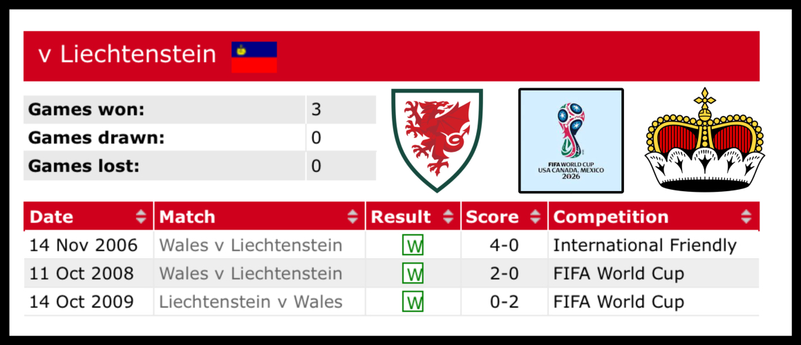 Wales v Liechtenstein: World Cup Qualifier LATEST Thursday, 5th Jun 2025 16:24 by Swansea Independent Swansea City are again well represented in the Wales squad with Liam Cullen, Ollie Cooper and Ben Cabango in Craig Bellamy’s squad. This is one of those proverbial must win games, and Wales will start as favourites. The Bellamy squad for Liechtenstein and Belgium. Karl DARLOW (Leeds United), Danny WARD (Leicester City), Adam DAVIES (Sheffield United), Neco WILLIAMS (Nottingham Forest), Jay DASILVA (Coventry City), Connor ROBERTS (Burnley), Ronan KPAKIO (Cardiff City), Ben DAVIES (Tottenham Hotspur), Chris MEPHAM (Sunderland- On loan from Bournemouth), Ben CABANGO (Swansea City), Joe RODON (Leeds United), Josh SHEEHAN (Bolton Wanderers), Charlie CREW (Doncaster Rovers- On loan from Leeds United), Ethan AMPADU (Leeds United), Jordan JAMES (Stade Rennais), Ollie COOPER (Swansea City), Harry WILSON (Fulham), David BROOKS (Bournemouth), Sorba THOMAS (Nantes- On loan from Huddersfield Town), Liam CULLEN (Swansea City), Nathan BROADHEAD (Ipswich Town), Lewis KOUMAS (Stoke City- On loan from Liverpool), Rabbi MATONDO (Hannover 96- On loan from Rangers), Kieffer MOORE (Sheffield United), Mark HARRIS (Oxford United), Brennan JOHNSON (Tottenham Hotspur), Daniel JAMES (Leeds United). The game kicks off at 7:45pm and we have a reporter at the game as usual. Liam Cullen (below) has had a very positive time playing for his country under Bellamy and will most certainlybe looking to get more goals over the next two World Cup Qualifiers. On Monday nigh on five thousand fans will follow their side to Belgium (7:45pm) That game will see quite a number from the Indy in attendance so we wish them a safe journey. Another four points would be most welcome from these latest qualifiers taking their total to eight from twelve possible points. ![]() Recent form couldn’t be different for these two countries. ![]() There have been three meetings between the countries, Wales have won all of them conceding no goals. ![]() Interestingly the Liechtenstein national anthem is sung to the same tune as ‘God Save The King’ We are pretty unsure how that will be received amongst the Wales home supporters tomorrow evening. ![]() Cullen photo : Already licensed Reuters Please report offensive, libellous or inappropriate posts by using the links provided.