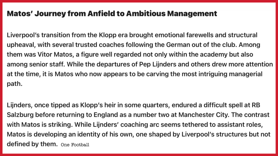 Matos on the brink for big Swansea job ? Tuesday, 18th Nov 2025 16:16 by Keith Haynes He has come out of the blue some may think, but Vitor Matos, currently the head coach at CS Marítimo has been spoken to over a number of weeks. A late contender he is not. In fact as this progresses the full facts we are sure will come out. Casting Kim Hellberg well aside (for now) He is moving towards a position at Middlesbrough with a late attempt by his current employers at HammarbyIF to agree a contract this morning. They haven’t the financial means, and purely rely on his loyalty despite matching Swansea City and their offer this past weekend. Vitor Matos has incensed certain quarters of the Swans support, others are more amiable and there have been shouts of ‘Why the hell didn’t we just keep Sheehan’ A quick look at Matos and his managerial career displays a man who has been on a long coaching journey. Two years at Shandong Taishan in China as a coach inter-dispersed with employment at Porto saw him eventually land at Liverpool. His main role being to monitor and adapt players moving towards first team involvement. He got many plaudits there but Vitor wanted more. In May 2024 he moved to RB Salzburg as an assistant coach. This is where his ability and overall competency is difficult to gauge. He wasn’t a prime mover during his time at Liverpool or in Austria. Stats are impossible to prove when that is the case. However, having been announced in Austria along with Onur Cinel. Pepijn Lijnders (assistant manager at Liverpool) was to be a brief employee in the hit seat at Salzburg. After twenty nine games he was sacked. Matos shortly followed and found himself in a position where his career was being affected by others decision making. ![]() Described as having similar qualities to Kim Hellberg bar of course the experience Matos decided a job offer at Maritímo in the Portuguese second division would work for him. Start there and now be in a position to show what you can do as the boss. That appointment came in the summer of this year. Maritimo aren’t the best of supported clubs with average crowds this season of eight thousand. However, there is huge expectation amongst their fanbase. Even just to get back to the top flight alone. Bruno Abreu is his assistant, the fifty year old possibly isn’t ‘currently’ on the agenda to follow Matos if he secures a job at Swansea. But surely his experience would be invaluable ? Away from there João Nunez and Nelson Santos could be under discussion. Bruno would possibly like the head coach role at Maritimo but all is under wraps and nothing further as yet is known. It’s odds on that Vitor’s appointment (and that’s looking good) will see additional coaching staff, at what level and where they sit in the current set up at Swansea is still under discussion. If the Swans pay they will get their way. And it’s very much a case now of Matos being massively cheaper than Kim Hellberg. If he fits the bill it doesn’t matter, those on the ground which we are informed publicly are Chairman,Tom Gorringe and head recruiter, Adam Worth will have to stand or fall when / if Matos comes to Swansea. If that’s a consequence of their manager search of course. A lot is being placed on Worth’s shoulders by Brett Cravatt, despite their long term relationships in business this is one hell of a hot potato. We can always hope this is the right direction. Matos has had thirteen matches as head coach at his current club. He has won six. To date he has rejuvenated Maritimo as a club. But it is short term. We discounted Russell Martin yesterday. ⚽️ A manager who won’t be coming No Russell Martin Where will all this end up ? It could easily run until Friday as it stands but of course the Swans want a quick decision. They will be awaiting a response from Maritimo for sure. But these things as ever take time. Alan Sheehan only left the Swans officially eight days ago. It’s early days as we still wait an announcement on Darren O’Dea especially who is now taking training with his remaining staff. There’s a game on Saturday but for the sake of getting it right the Swans won’t be rushing to get their man in for that fixture. ![]() Try us for size. Photograph RB Salzburg Please report offensive, libellous or inappropriate posts by using the links provided.